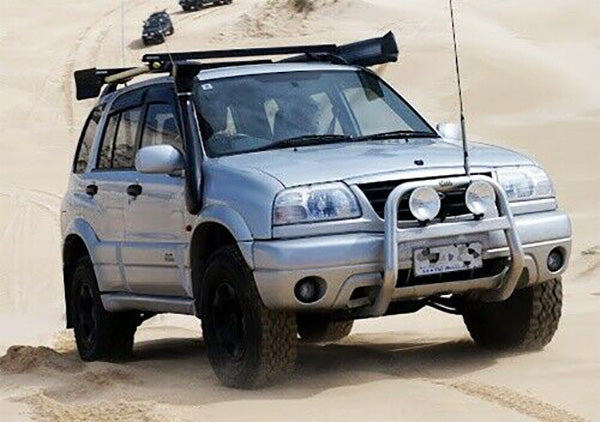 Exploring off-road sometimes requires your vehicle to cross rivers or streams. This means the intake will be low and close to the ground which means it will be more prone to suck in dust or be submerged in water, which may lead to catastrophic engine failure. A snorkel is a device that fits onto your engine’s air intake and allows your vehicle to continue to ‘breathe’, even as you’re passing through creeks and rivers that may be up to the doors.