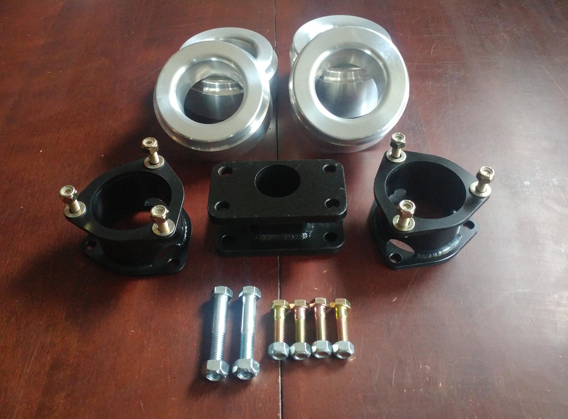 - 4 billet aluminum coil spacers, CNC machined to fit the frame and retain the stock rubber spring isolators